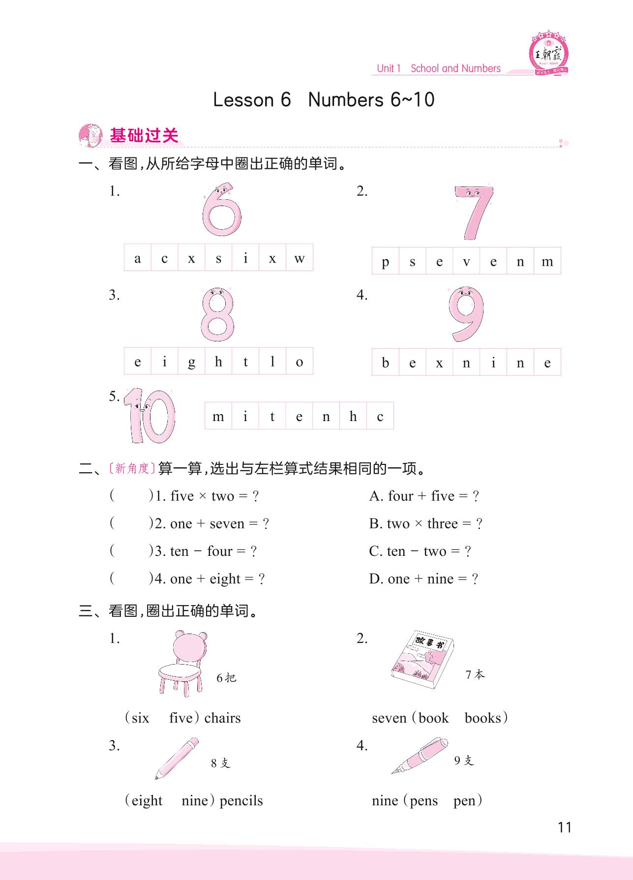2023上册三年级英语冀教版 Unit 1—Lesson 6 Numbers 6~10