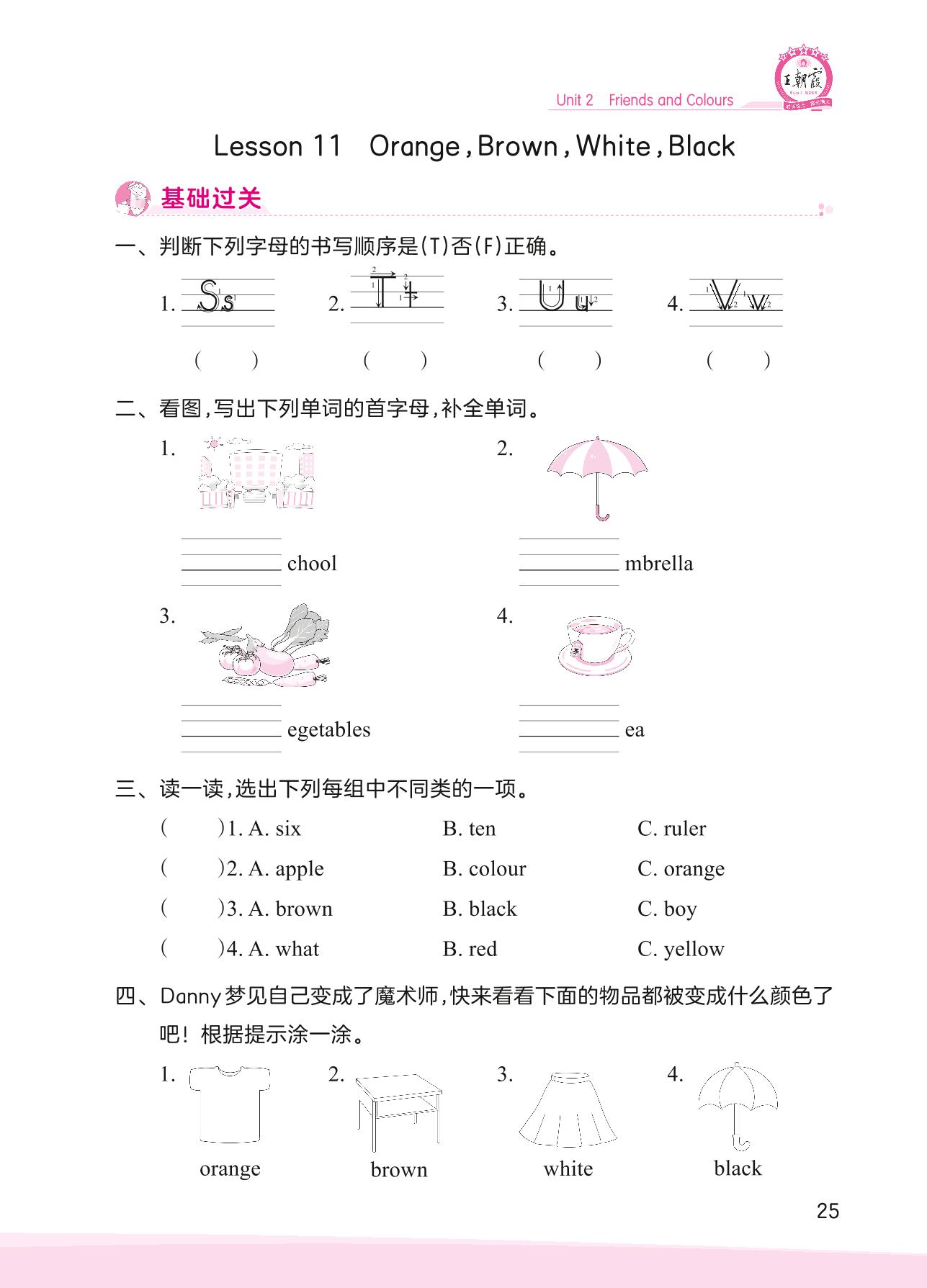 2023上册三年级英语冀教版 Unit 2—Lesson 11 Orange,Brown,White,Black