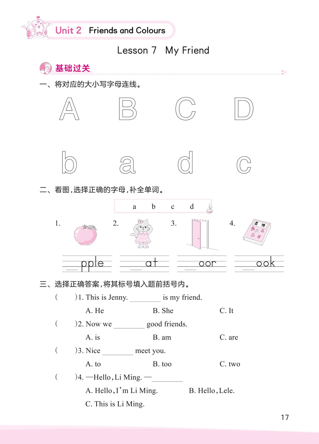 2023上册三年级英语冀教版 Unit 2—Lesson 7 My Friend