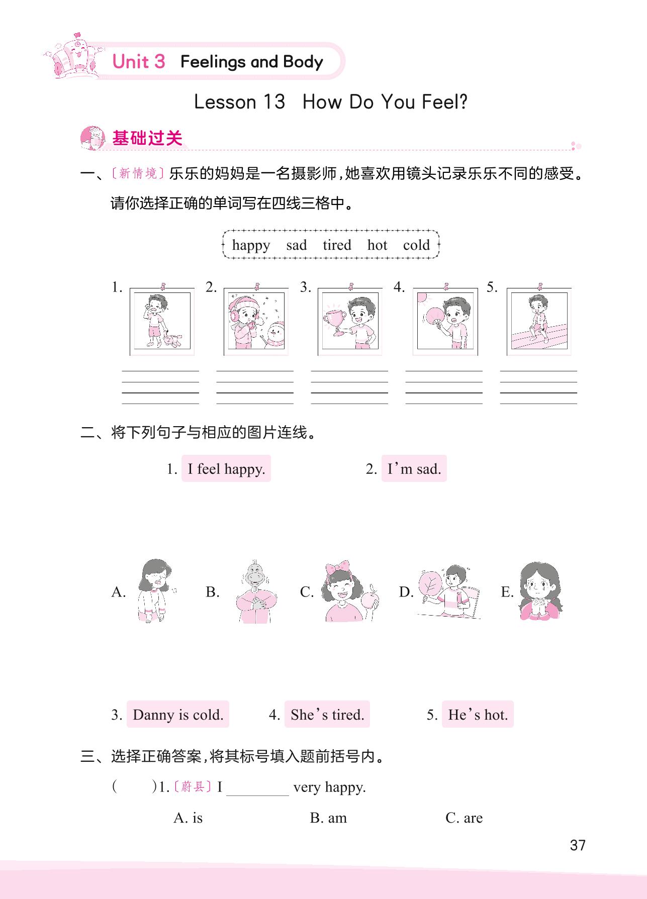 2023上册三年级英语冀教版 Unit 3—Lesson 13 How Do You Feel?