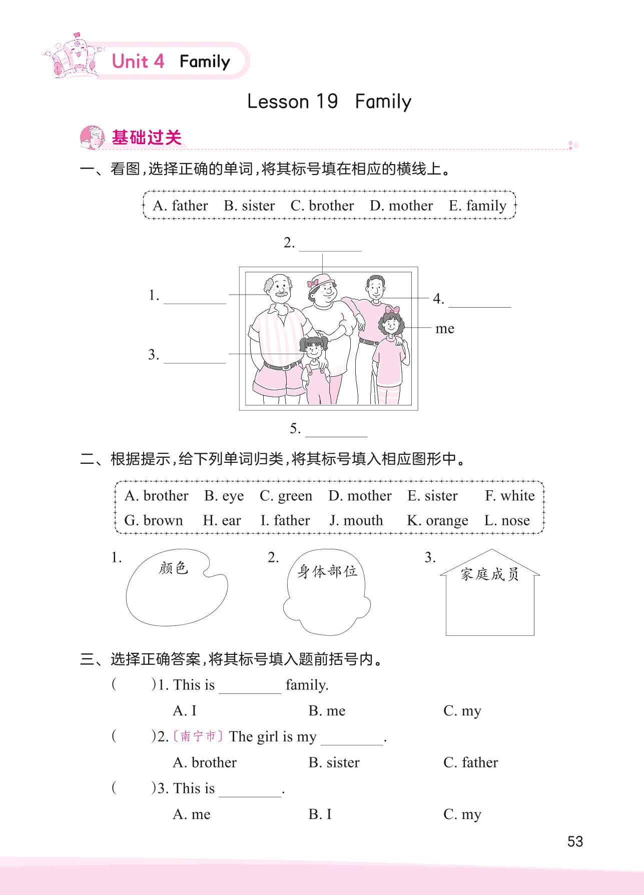 2023上册三年级英语冀教版 Unit 4—Lesson 19 Family