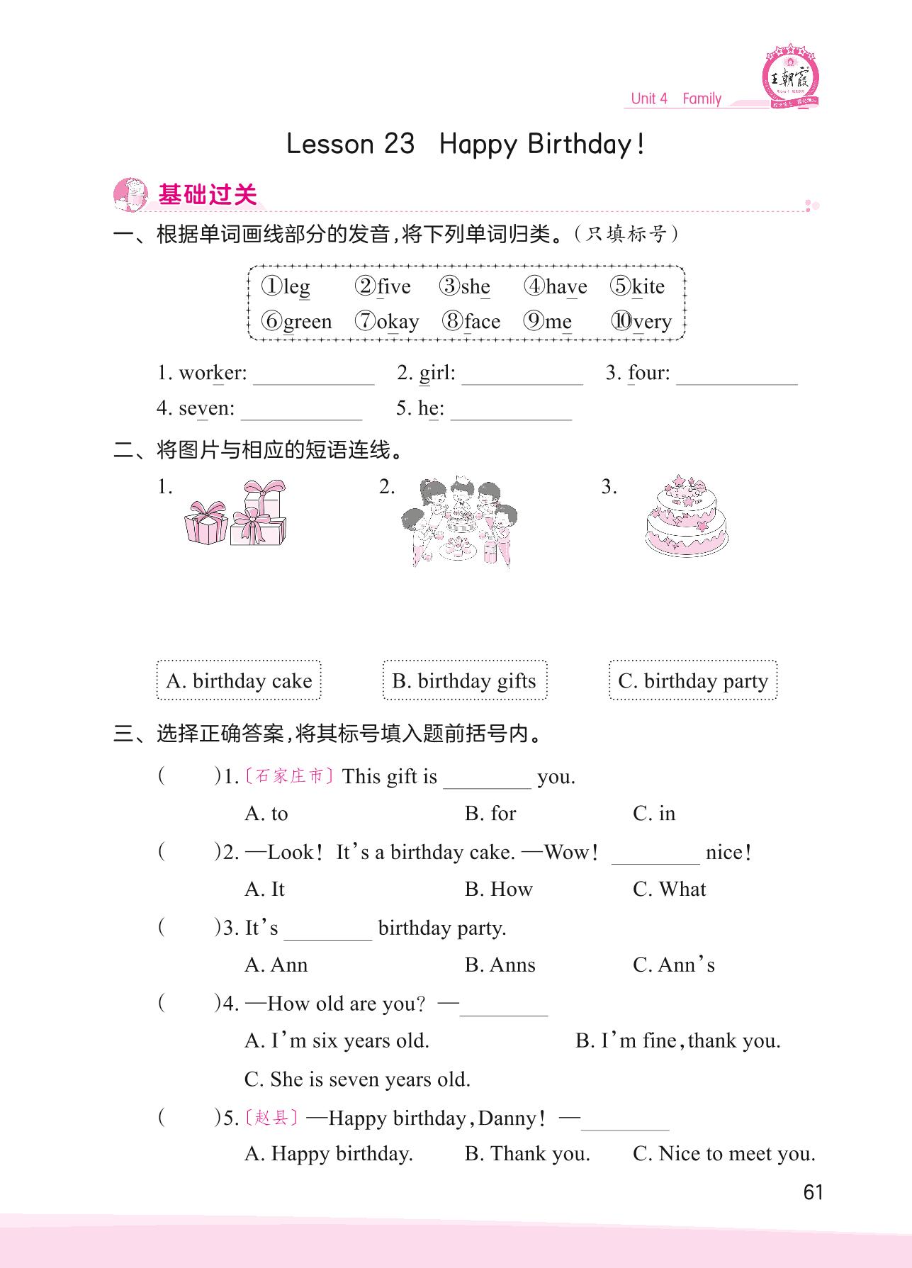 2023上册三年级英语冀教版 Unit 4—Lesson 23 Happy Birthday!