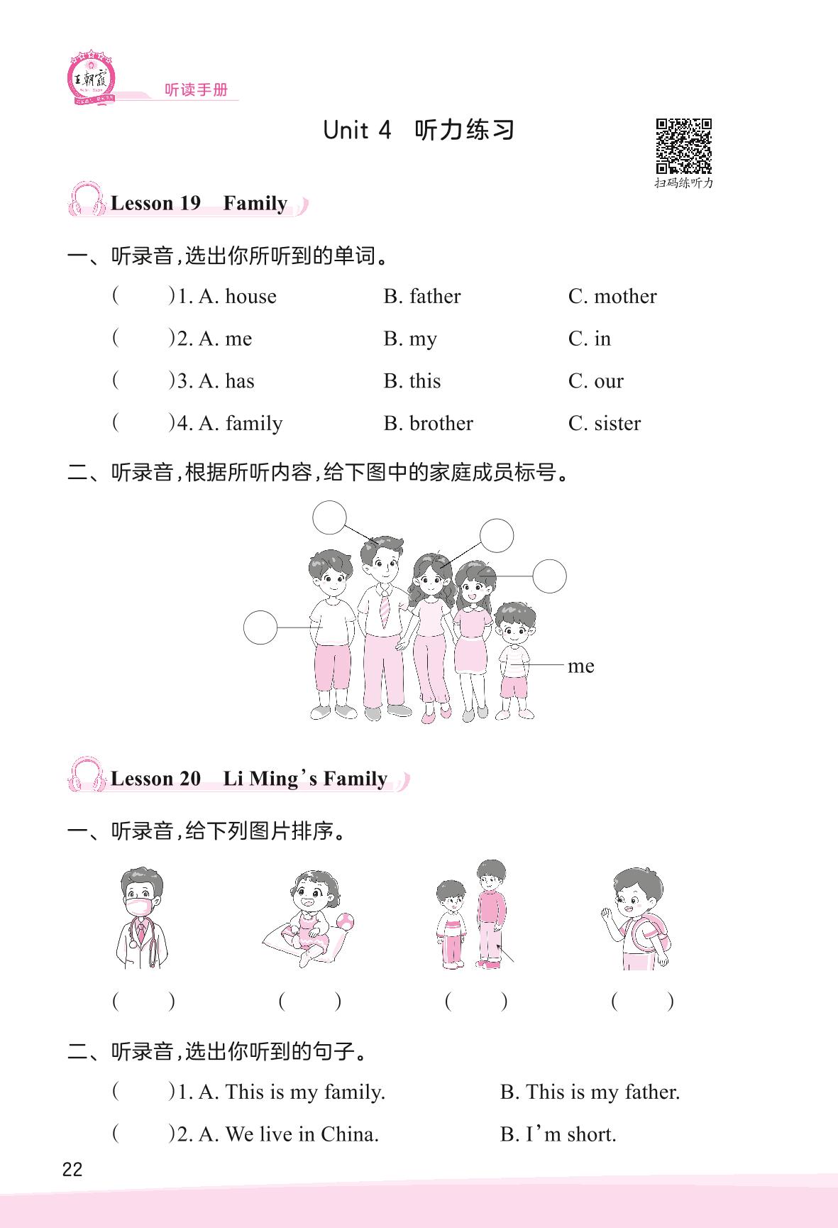 2023上册三年级英语冀教版 Unit 4 Family—lesson 19-24听力练习
