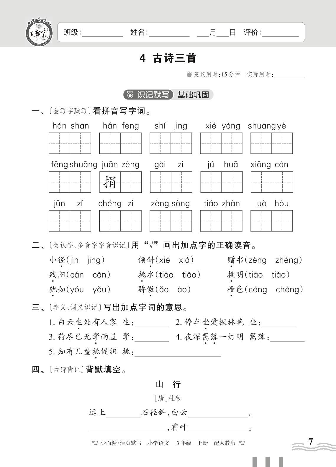 2023上册三年级语文人教版 第二单元——4 古诗三首