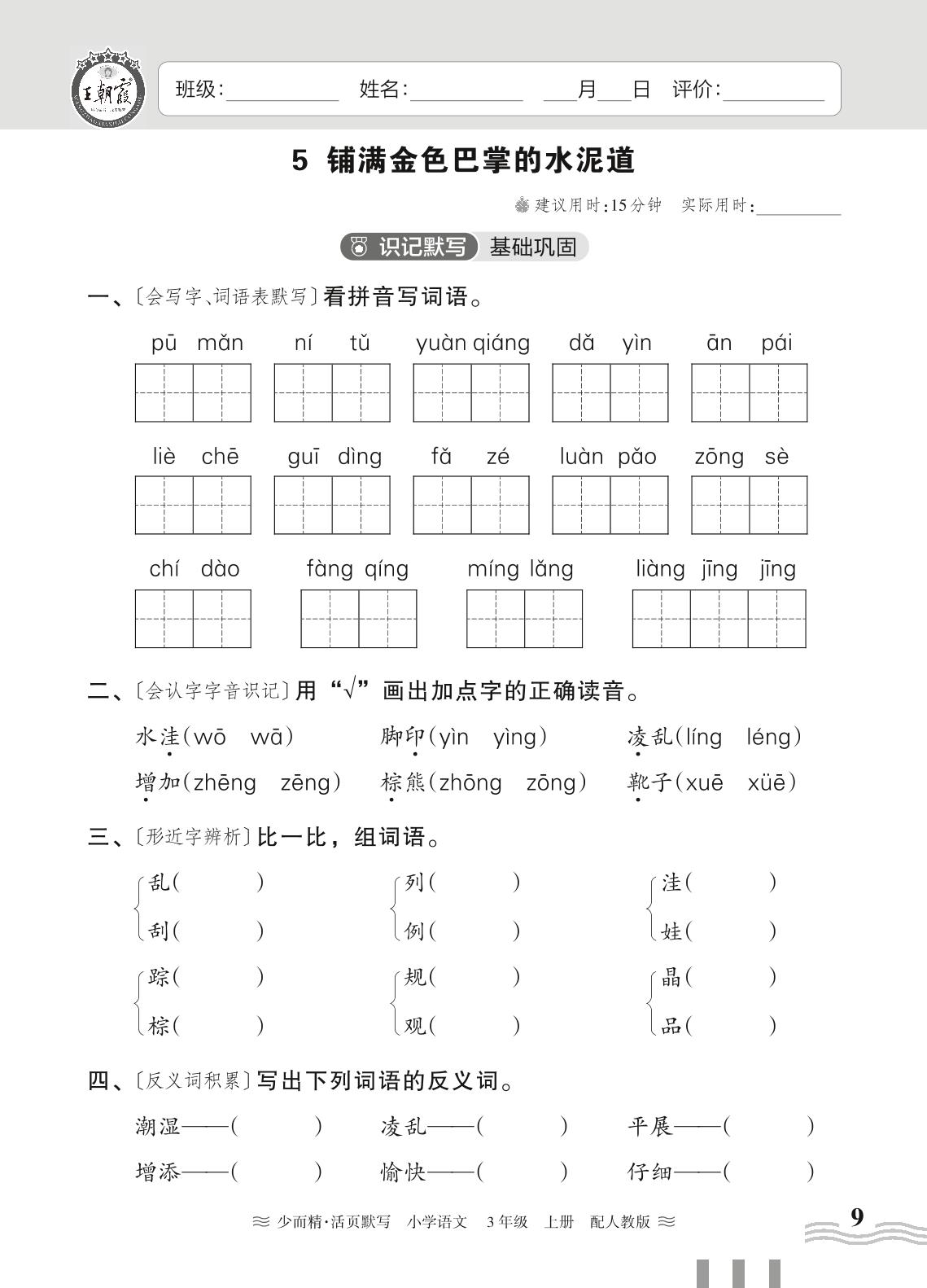 2023上册三年级语文人教版 第二单元——5 铺满金色巴掌的水泥道