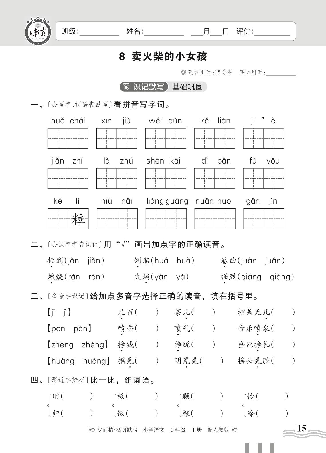 2023上册三年级语文人教版 第三单元——8 卖火柴的小女孩