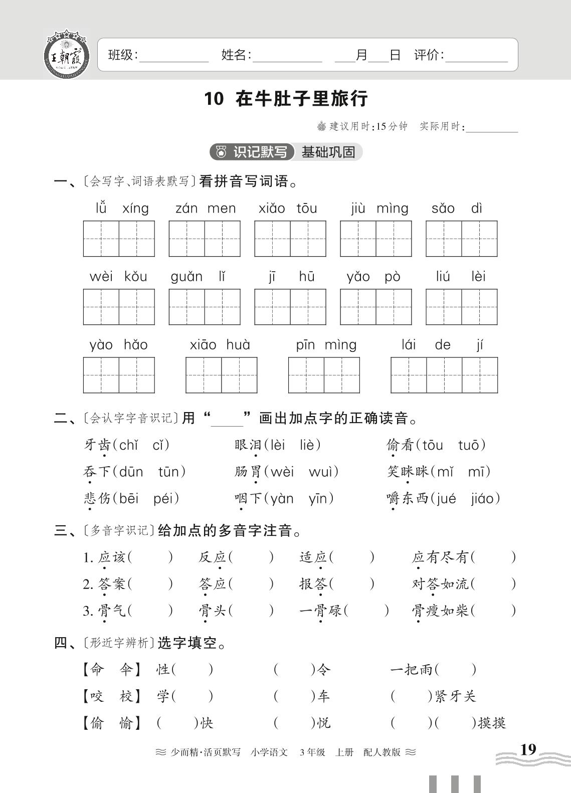 2023上册三年级语文人教版 第三单元——10 在牛肚子里旅行