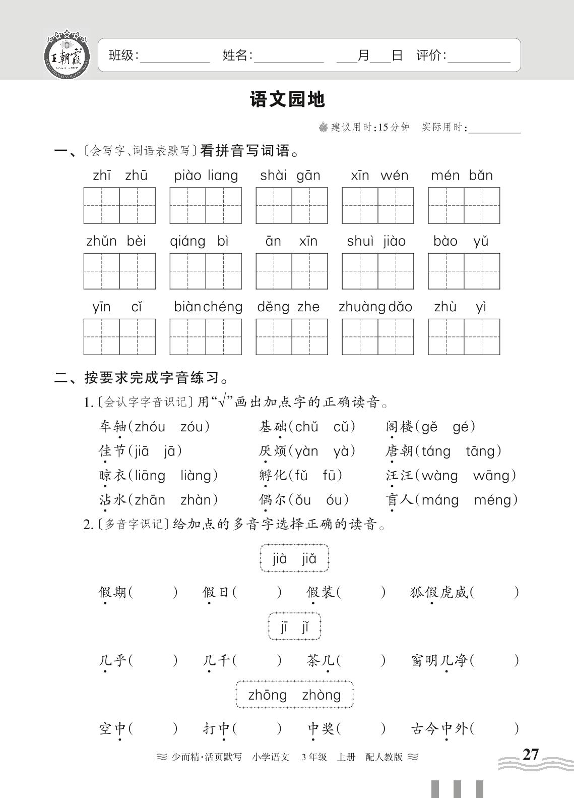 三年级语文人教版上册课时作业