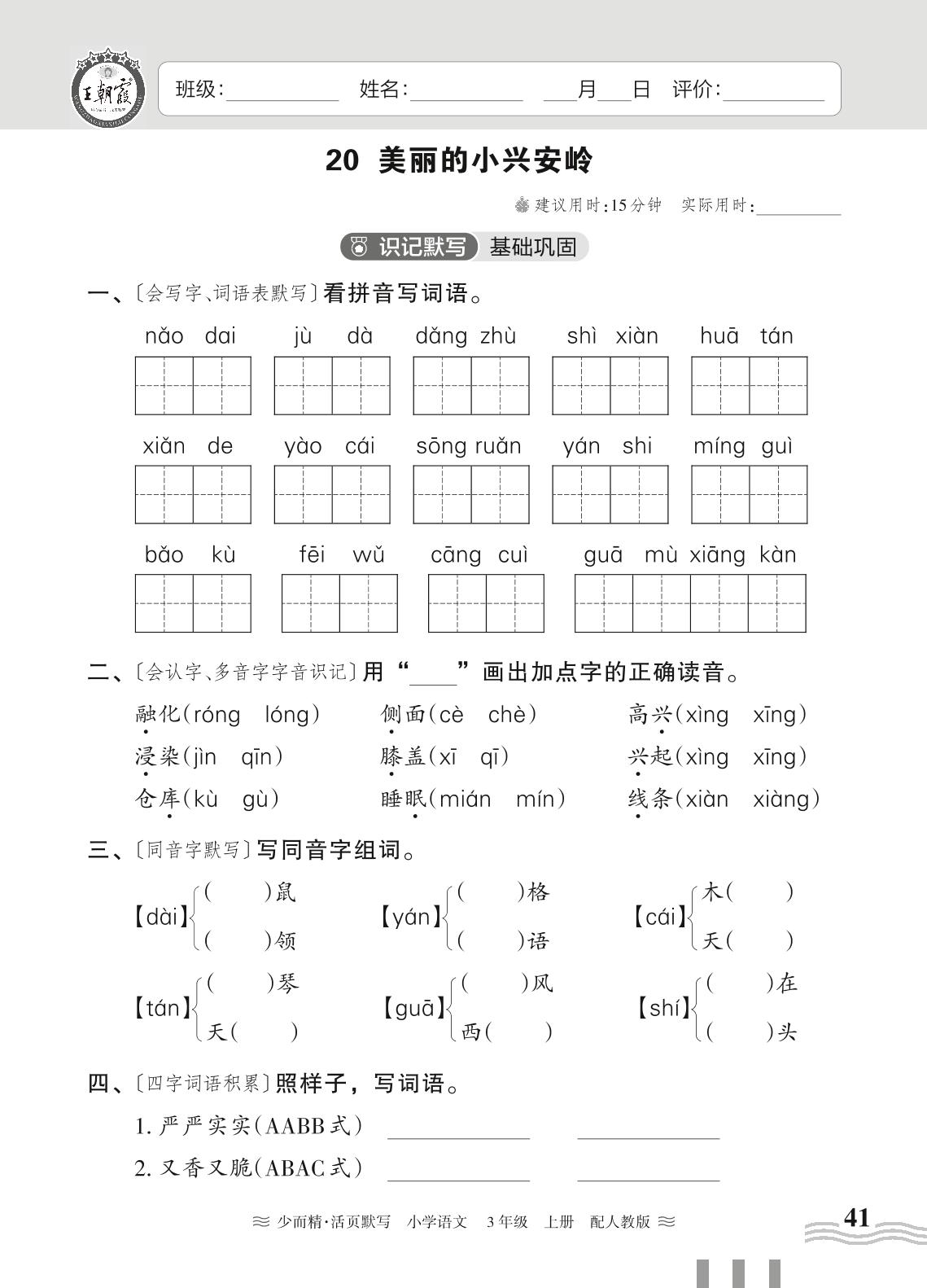 2023上册三年级语文人教版 第六单元——20 美丽的小兴安岭
