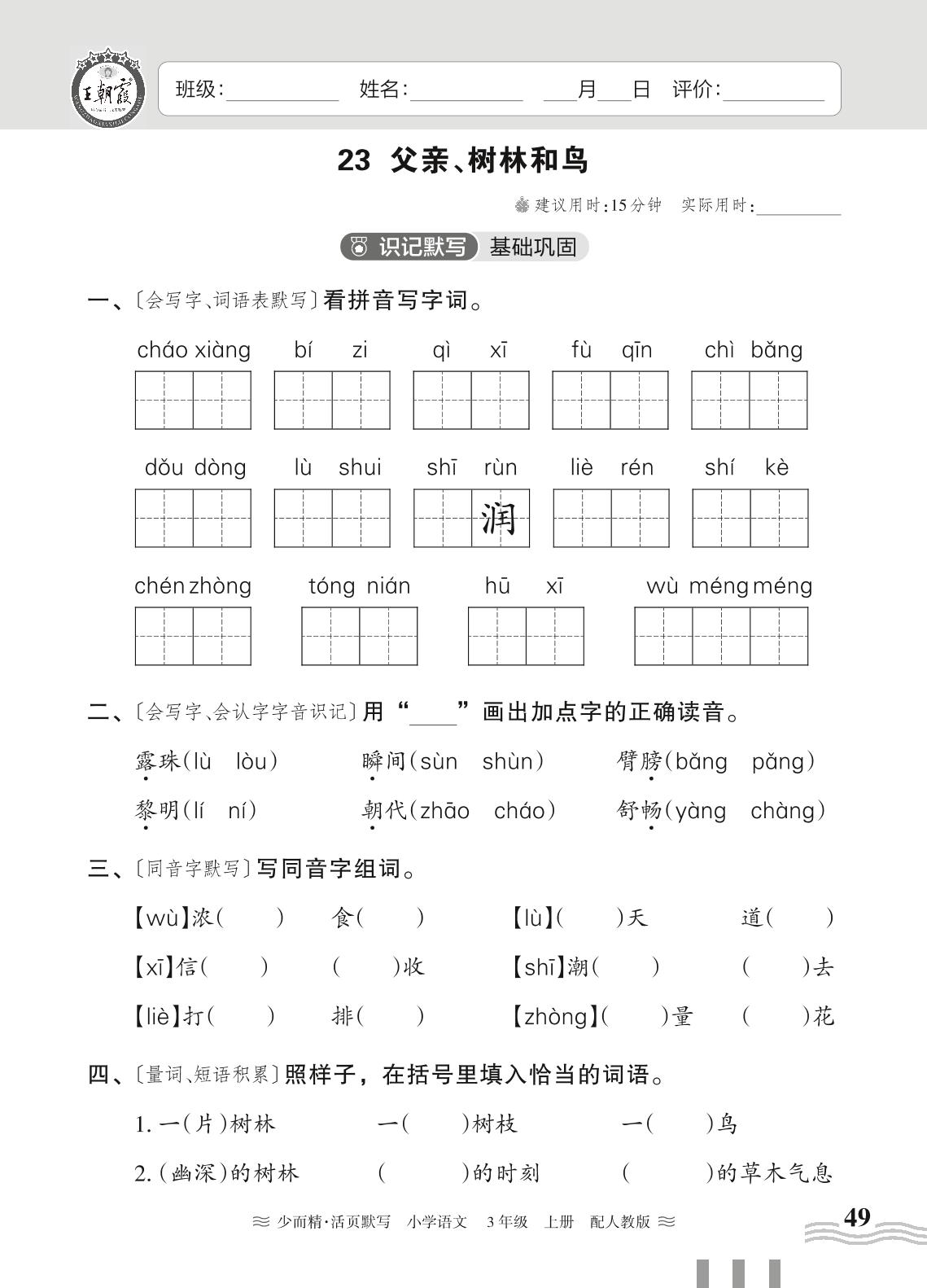 2023上册三年级语文人教版 第七单元——23 父亲、树林和鸟