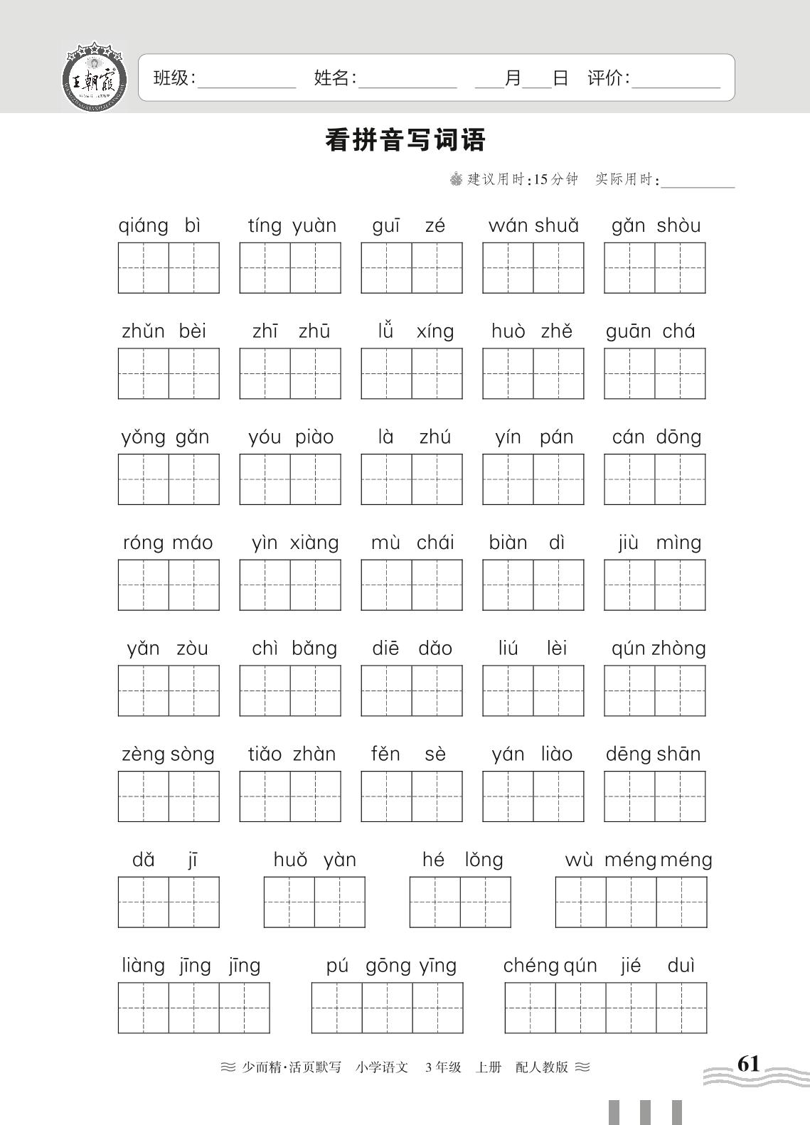 2023上册三年级语文人教版 期末专项练习——看拼音写词语