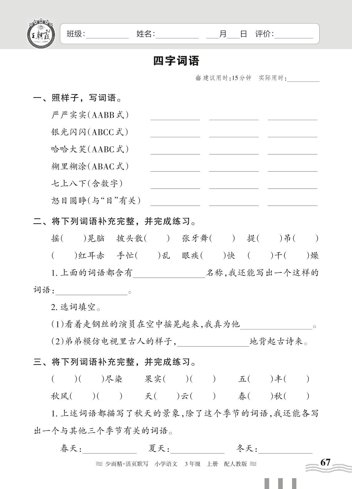2023上册三年级语文人教版 期末专项练习——四字词语