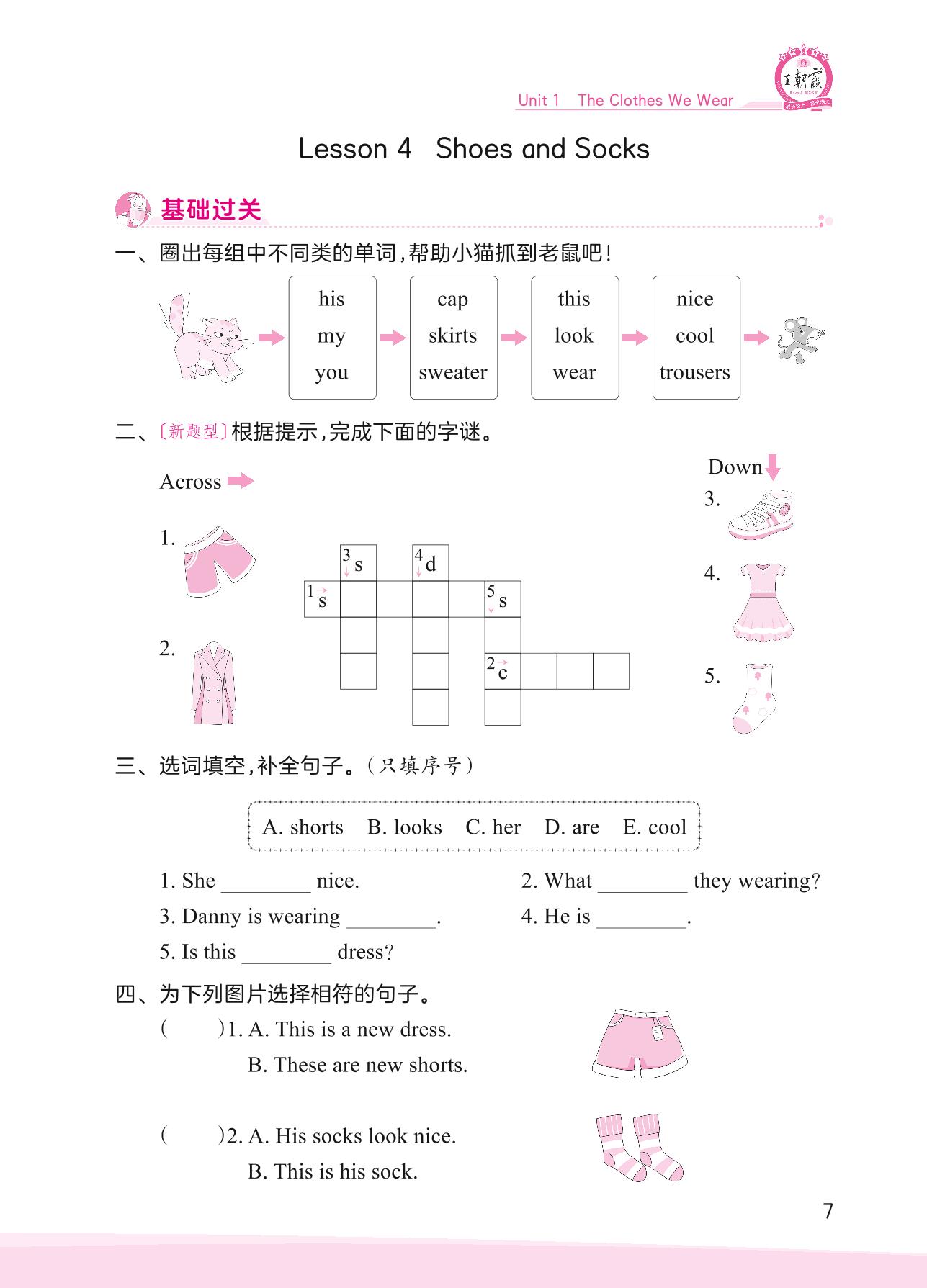 2023上册四年级英语冀教版 Unit 1—Lesson 4 Shoes and Socks