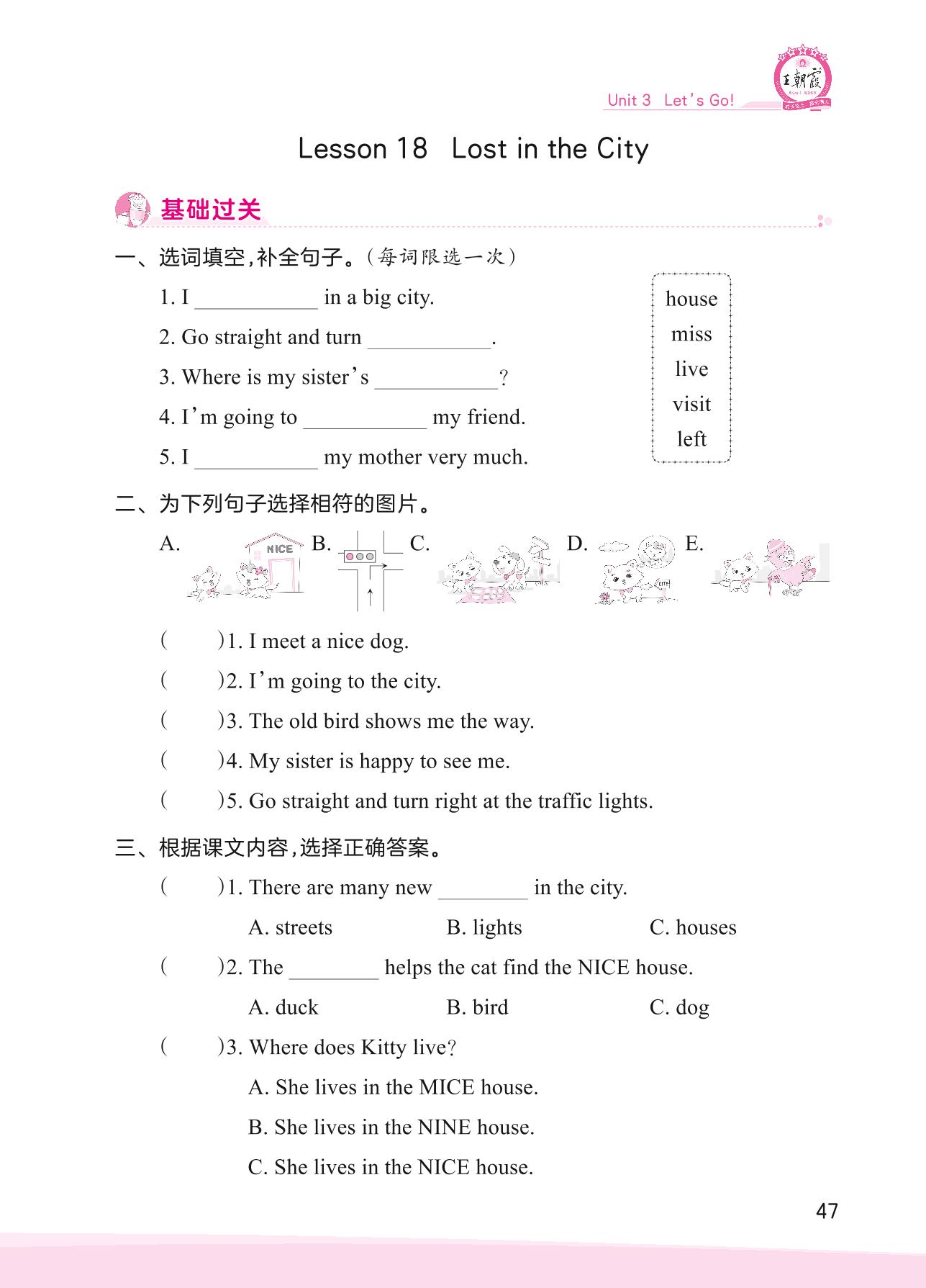 2023上册四年级英语冀教版 Unit 3—Lesson 18 Lost in the City