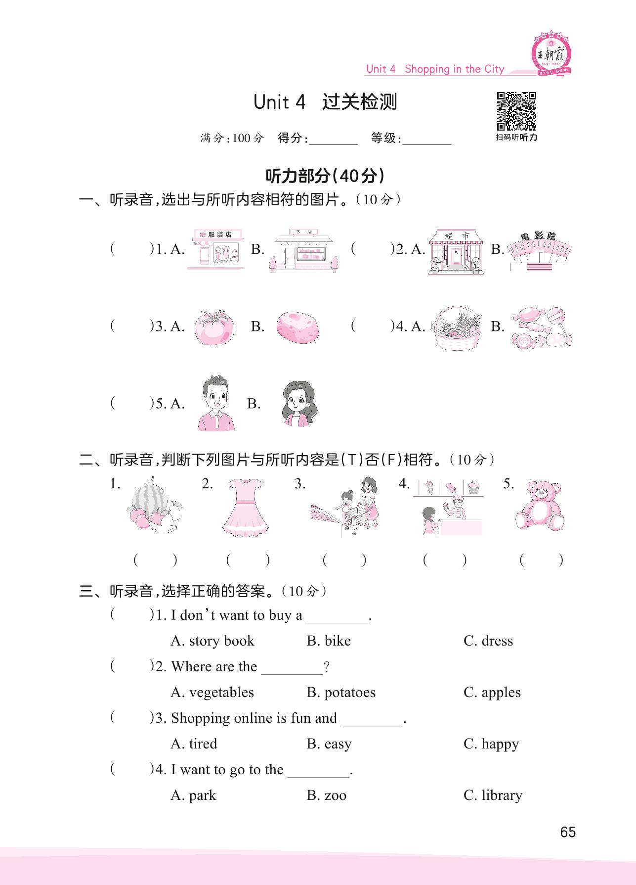 2023上册四年级英语冀教版 Unit 4 过关检测