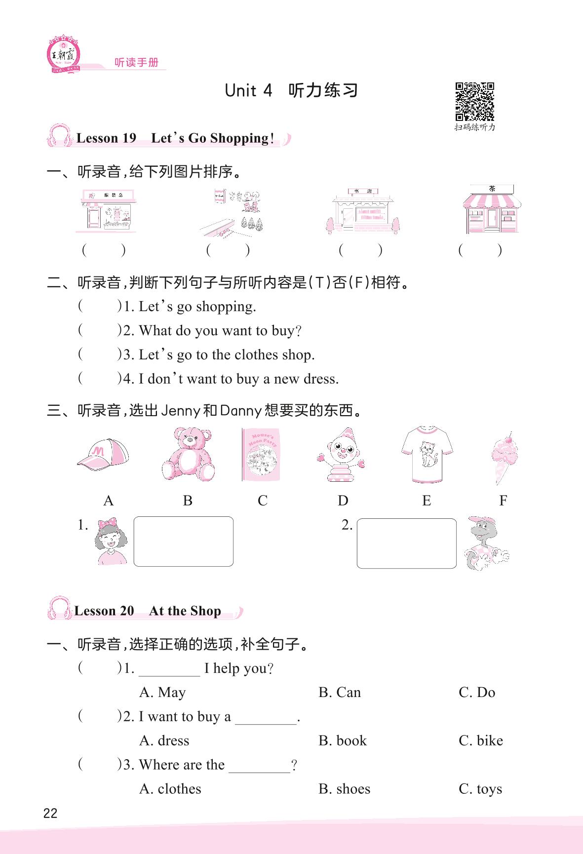 2023上册四年级英语冀教版 Unit 4 Shopping in the City—Lesson 19-24听力练习