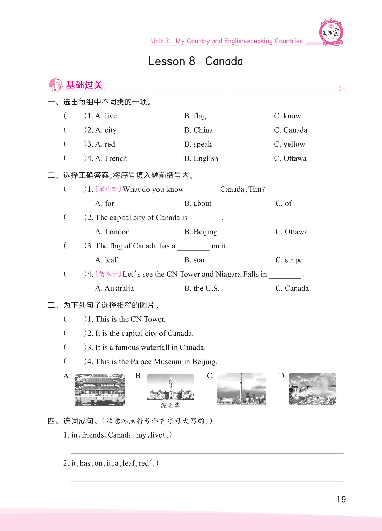 2023上册五年级英语冀教版 Unit 2—Lesson 8 Canada