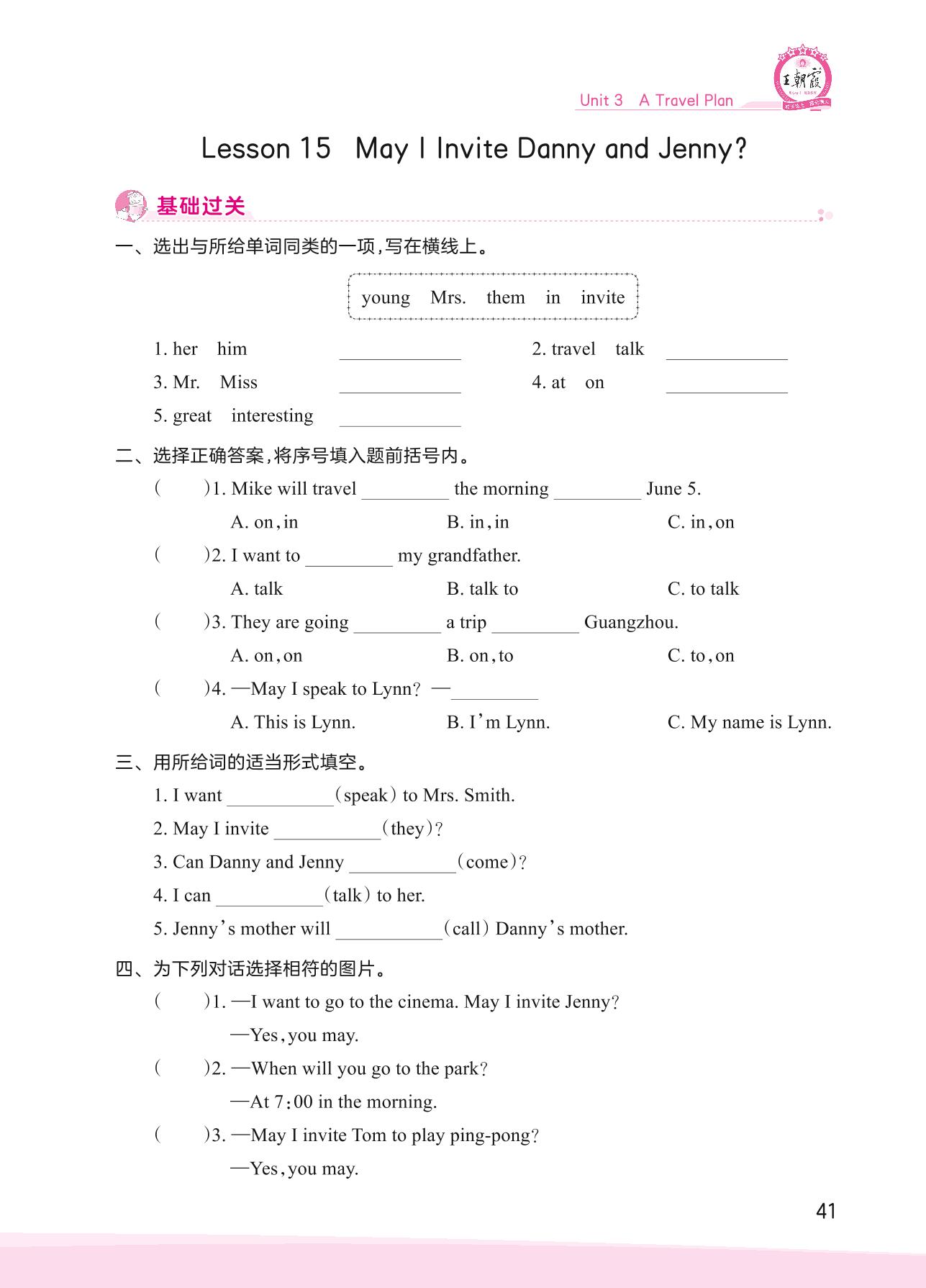 2023上册五年级英语冀教版 Unit 3—Lesson 15 May I Invite Danny and Jenny?