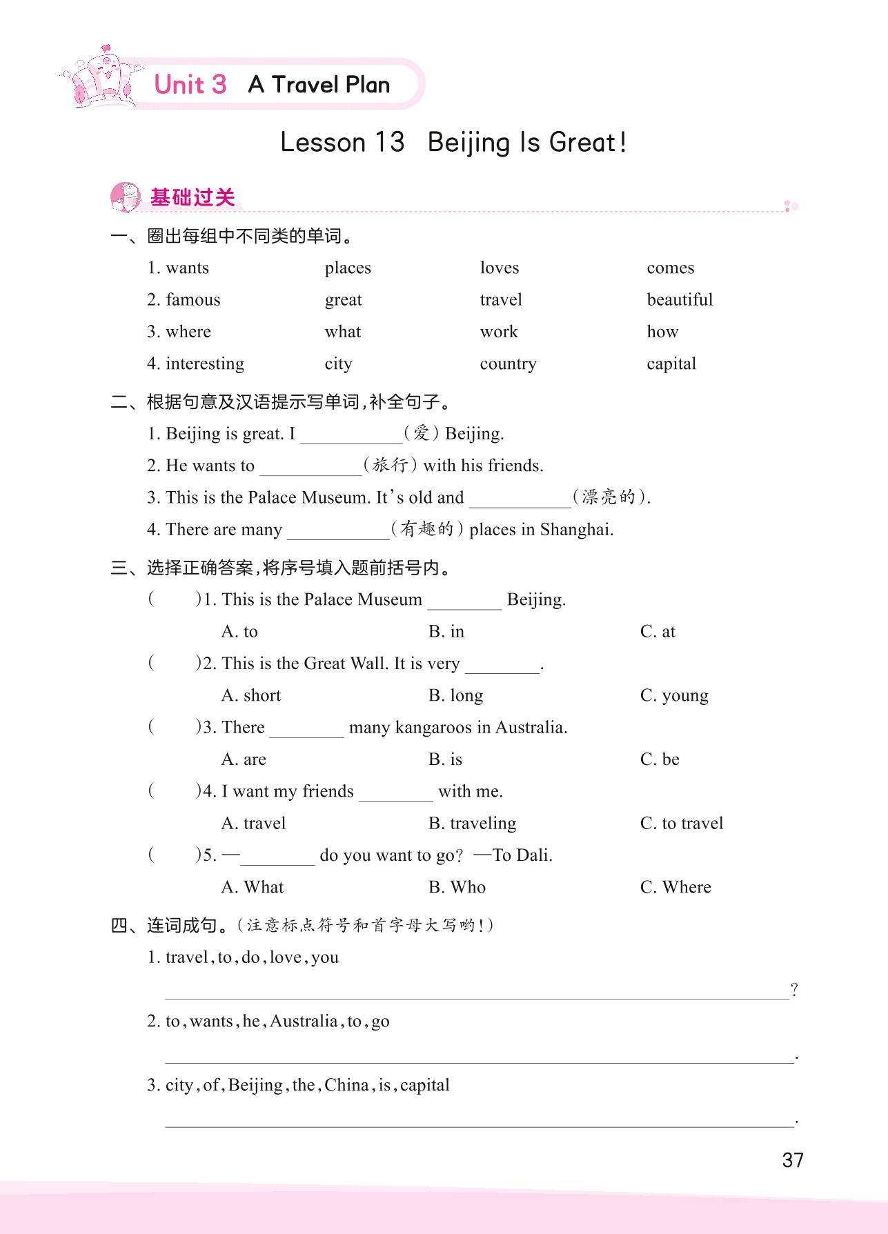 2023上册五年级英语冀教版 Unit 3—Lesson 13 Beijing Is Great!