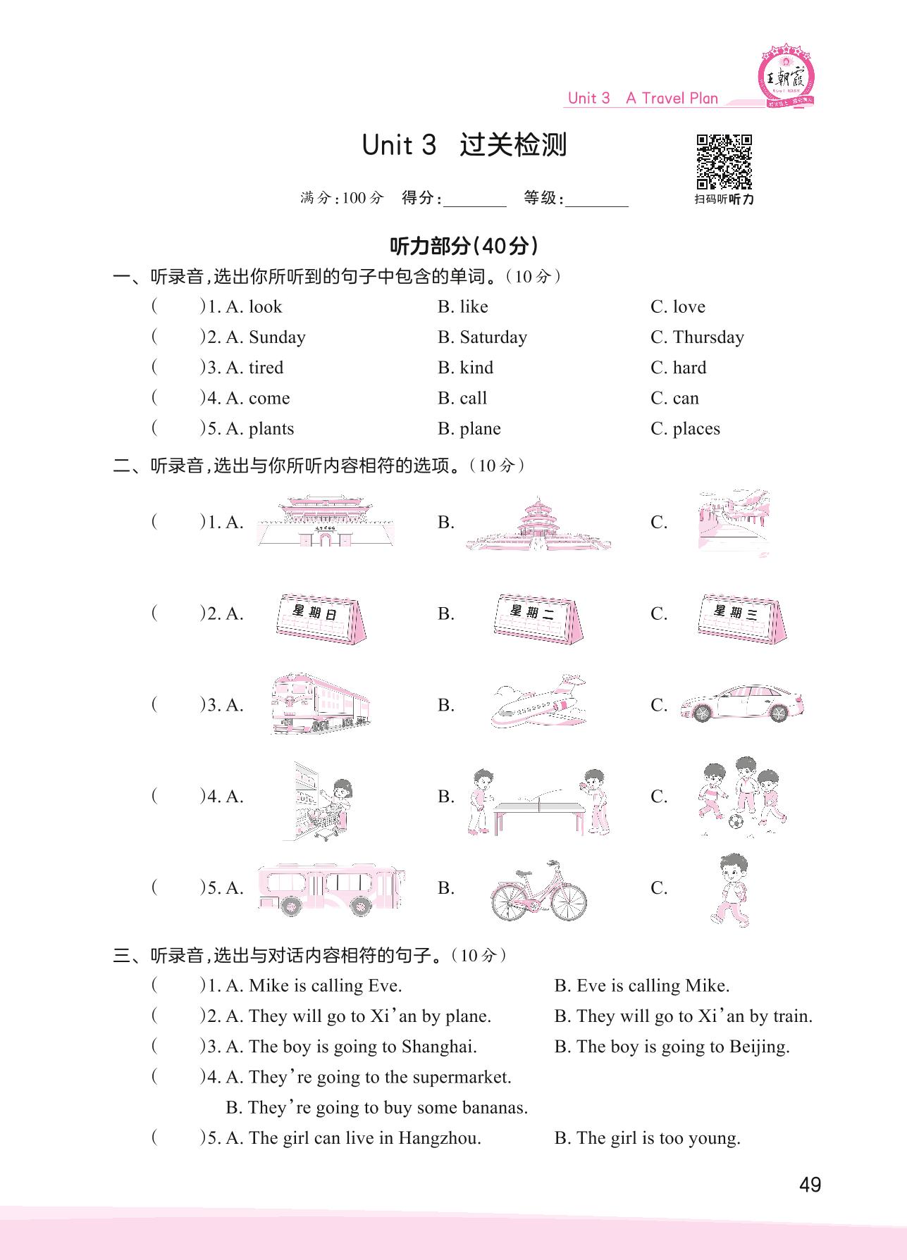 五年级英语冀教版上册单元卷