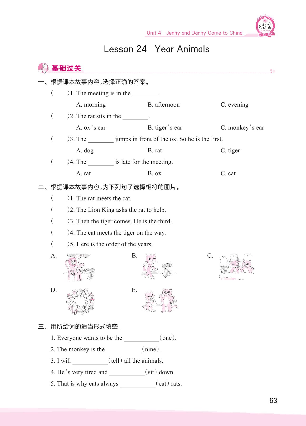 2023上册五年级英语冀教版 Unit 4—Lesson 24 Year Animals