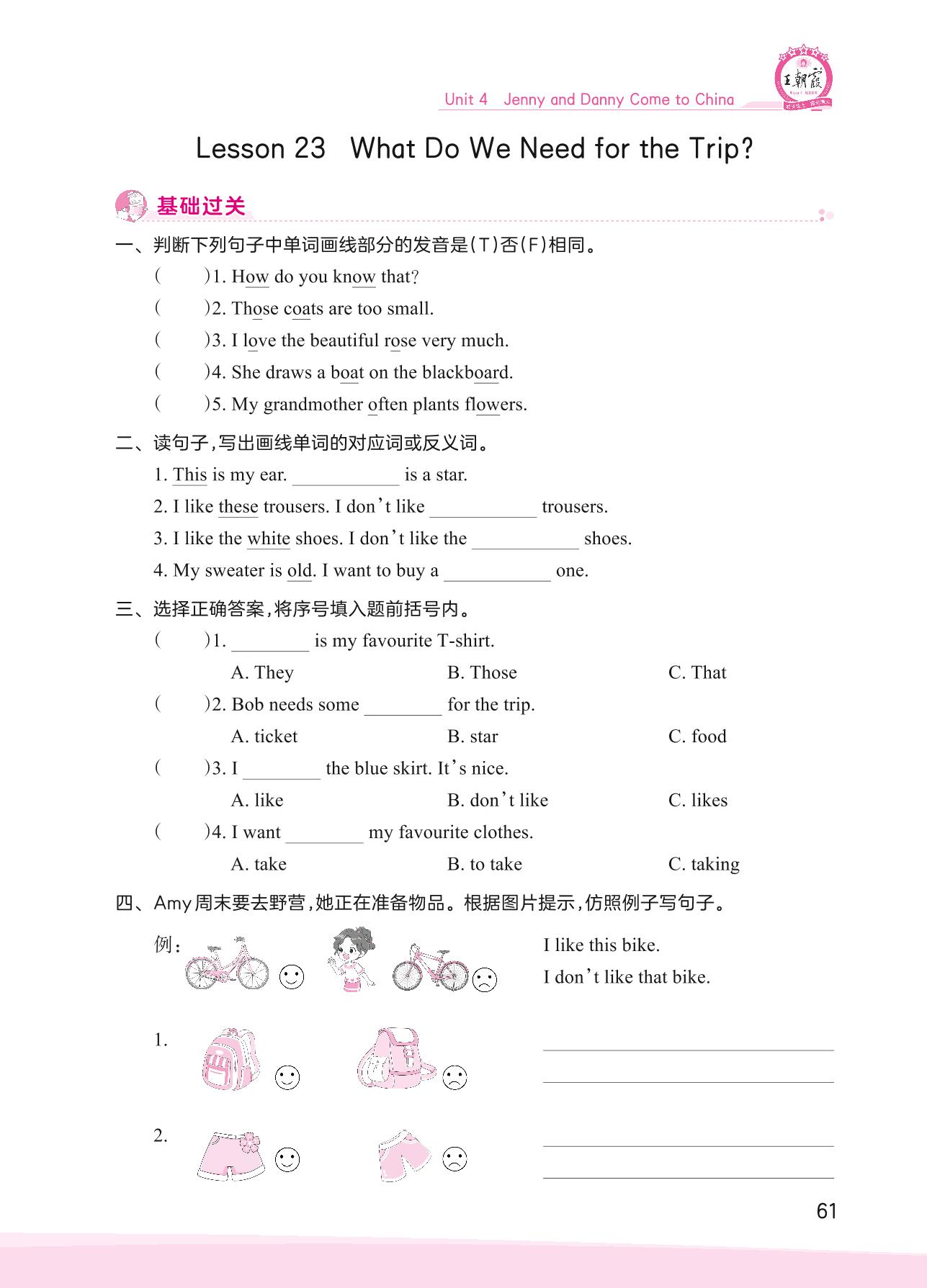 2023上册五年级英语冀教版 Unit 4—Lesson 23 What Do We Need for the Trip?