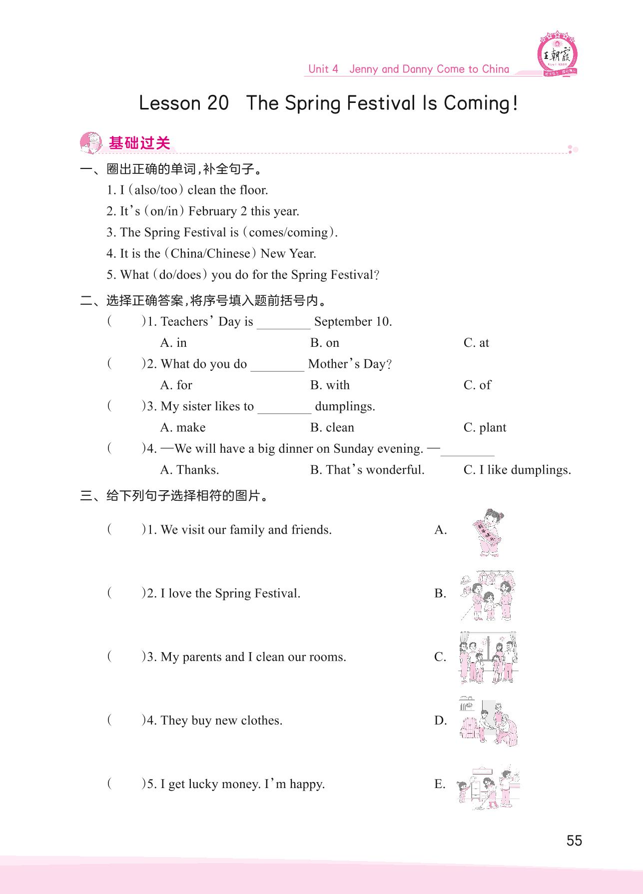 2023上册五年级英语冀教版 Unit 4—Lesson 20 The Spring Festival Is Coming!