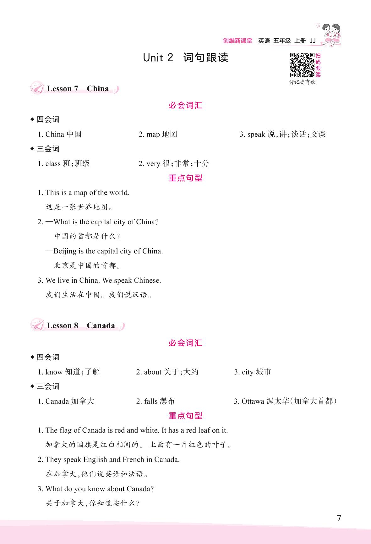 2023上册五年级英语冀教版 Unit 2 My Country and Englishspeaking Countries—词句跟读