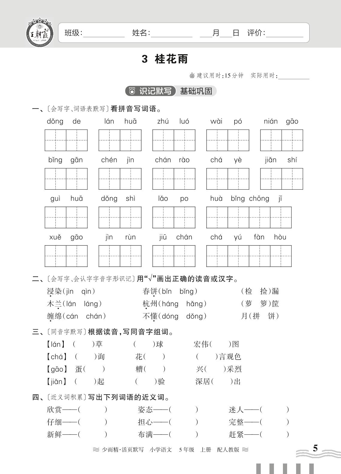2023上册五年级语文人教版 第一单元——3 桂花雨
