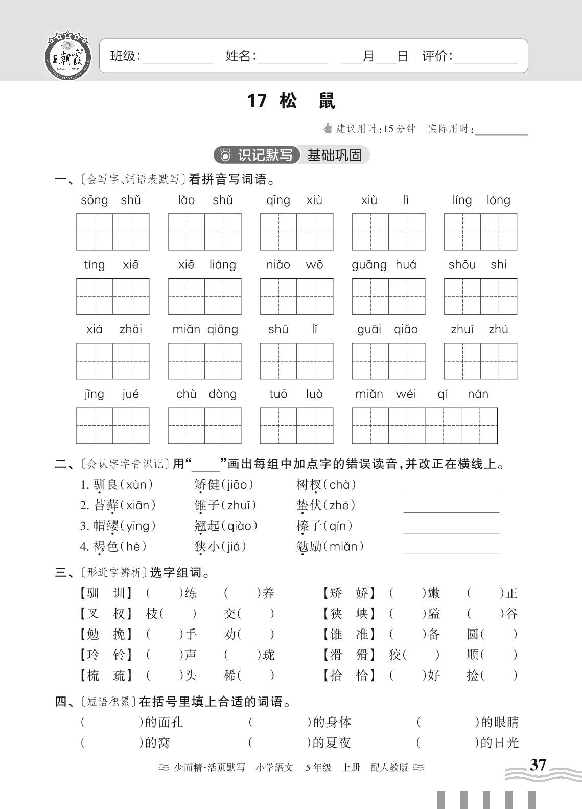 2023上册五年级语文人教版 第五单元——17 松鼠