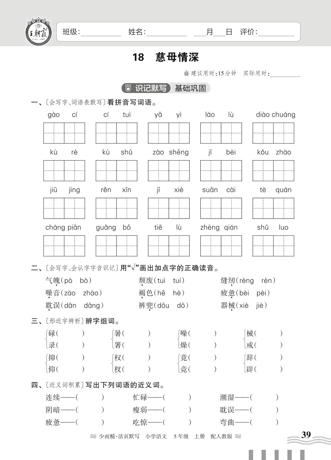 2023上册五年级语文人教版 第六单元——18 慈母情深