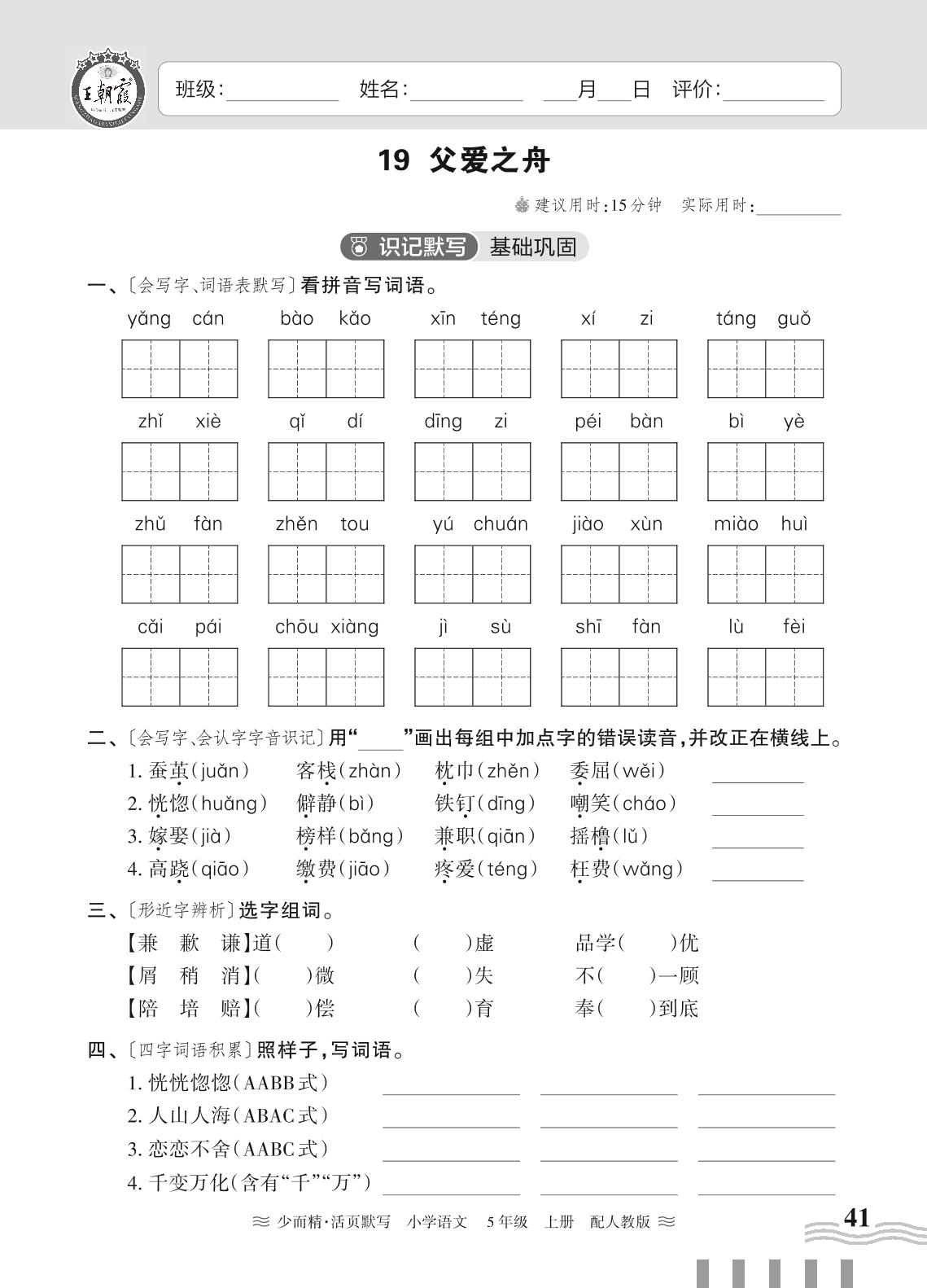 2023上册五年级语文人教版 第六单元——19 父爱之舟