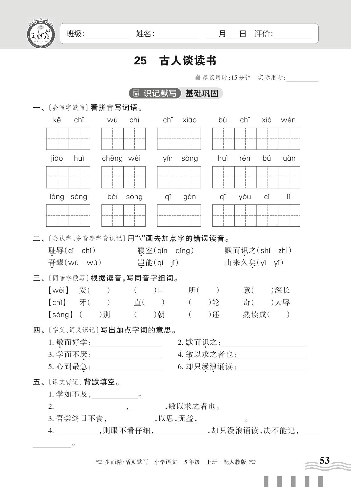 2023上册五年级语文人教版 第八单元——25 古人谈读书