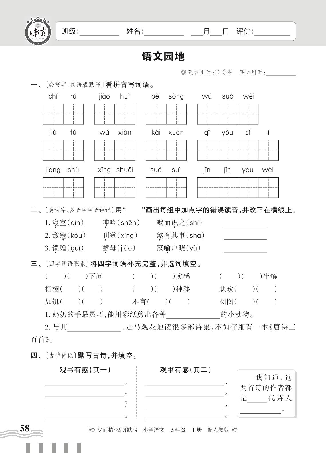 五年级语文人教版上册课时作业