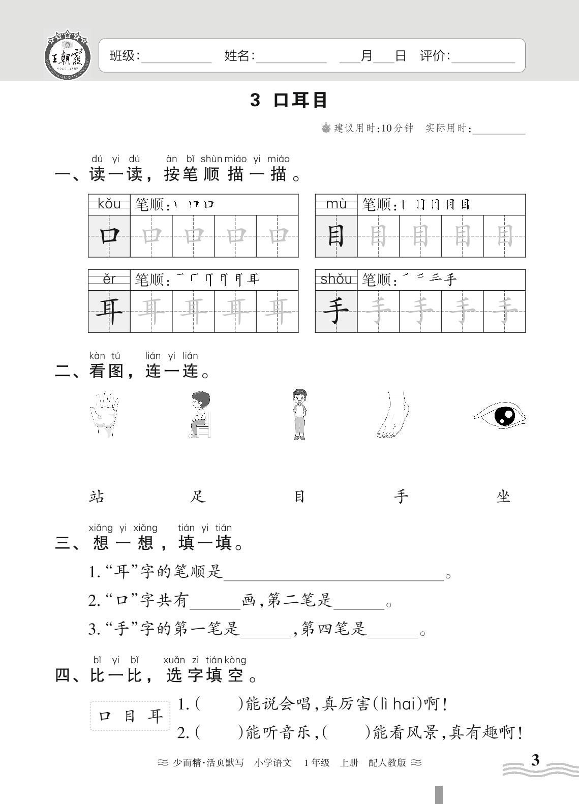 2023上册一年级语文人教版 第一单元——3 口耳目