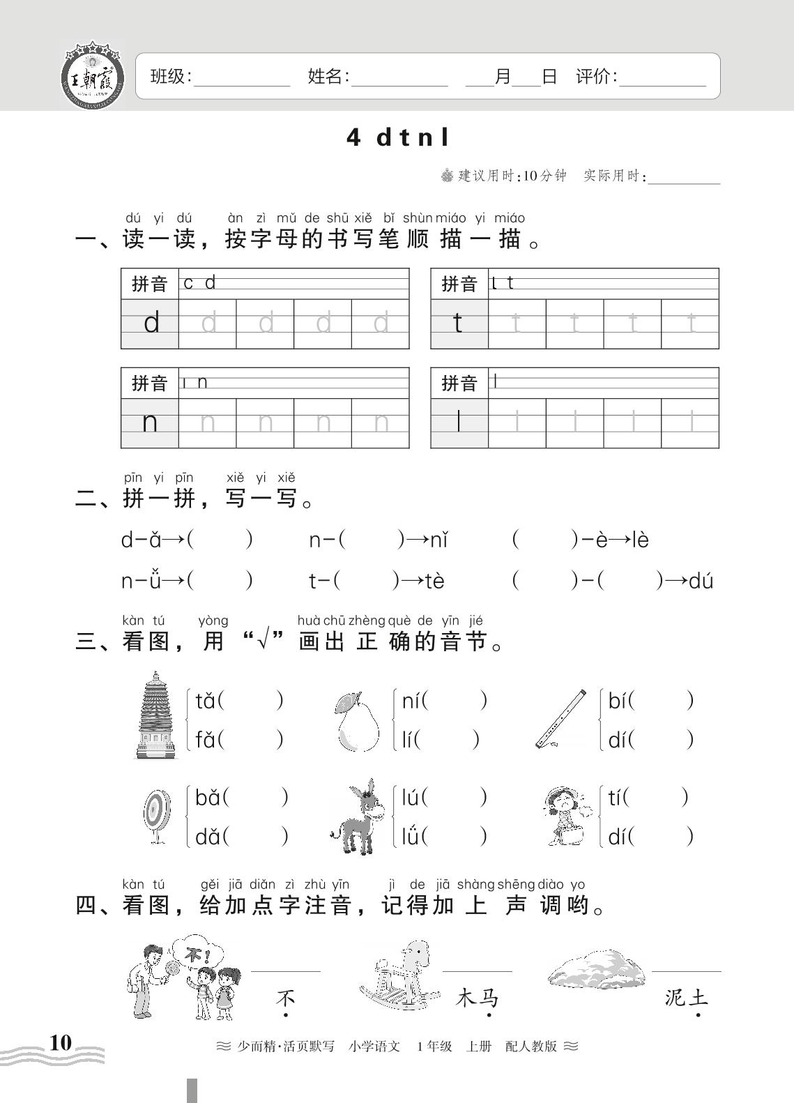 2023上册一年级语文人教版 第二单元——4 d t n l