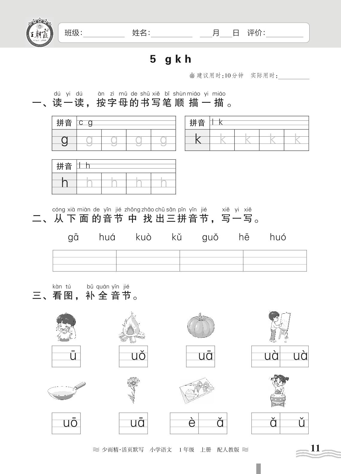 2023上册一年级语文人教版 第二单元——5 ɡ k h