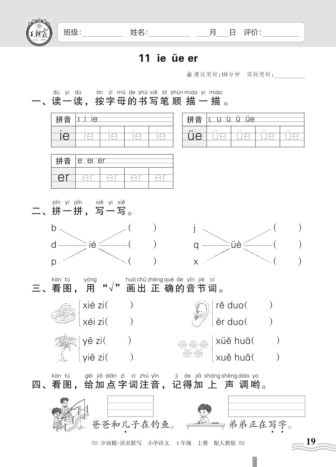 2023上册一年级语文人教版 第三单元——11 ie üe er