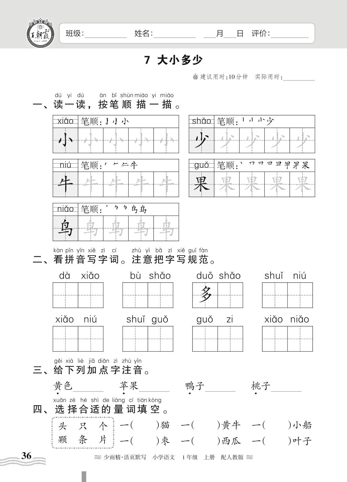 2023上册一年级语文人教版 第五单元——7 大小多少