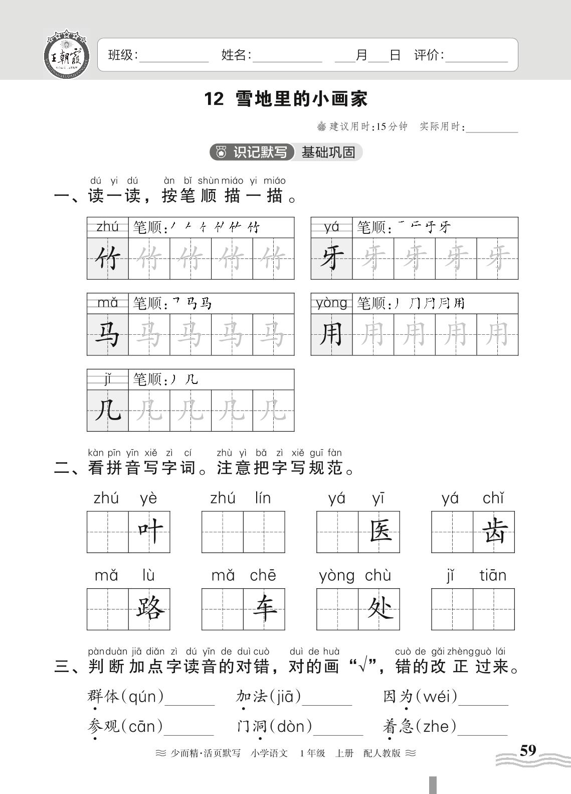 2023上册一年级语文人教版 第八单元——12 雪地里的小画家