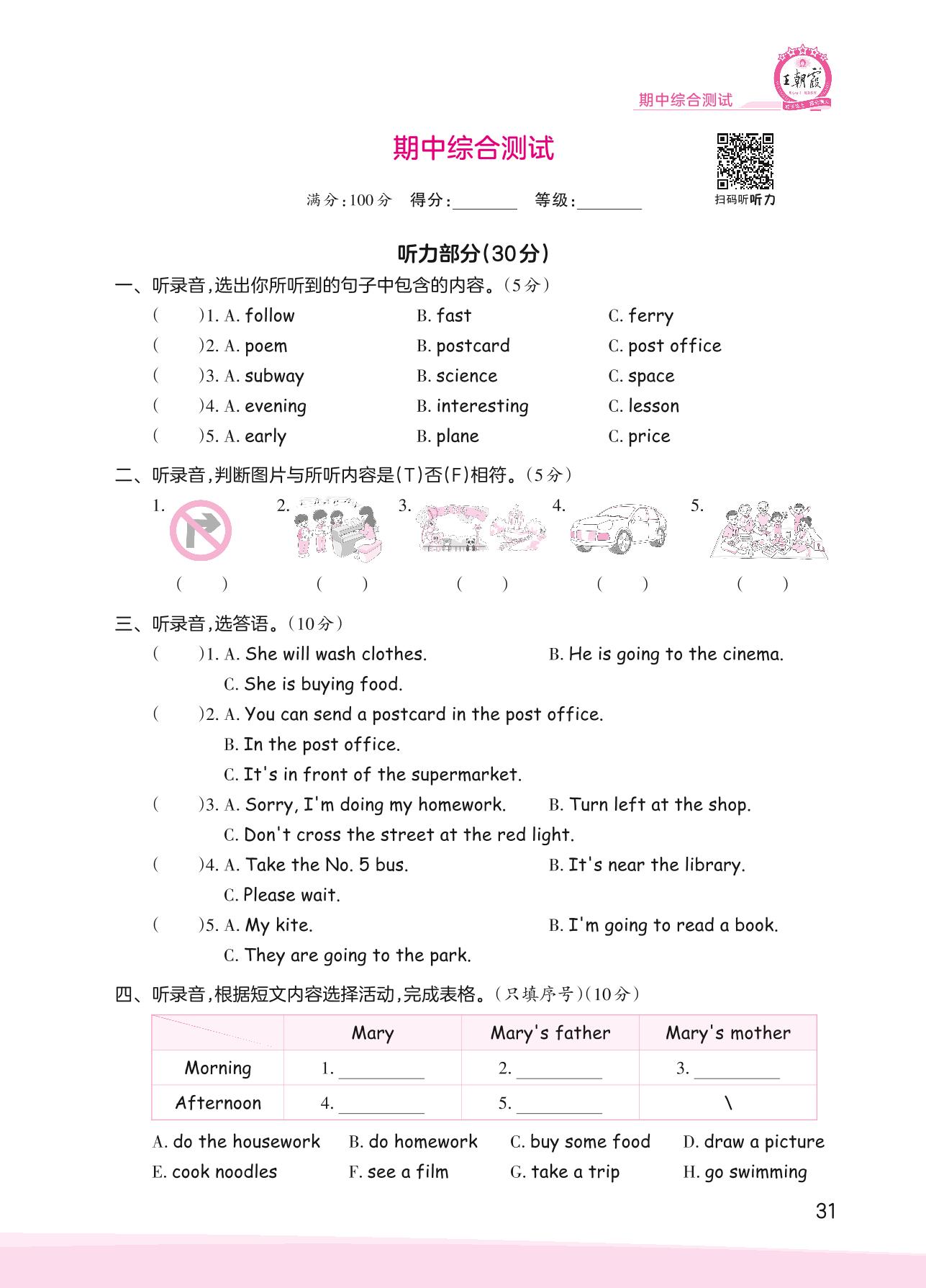 六年级英语人教PEP版(三起始)上册期中卷