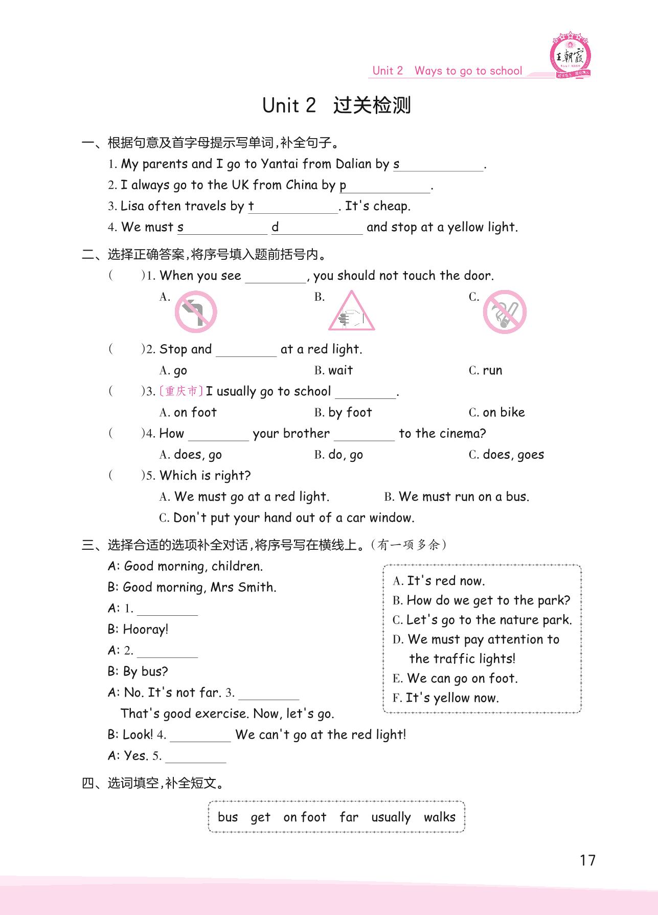 2023上册六年级英语人教PEP版 Unit 2 过关检测