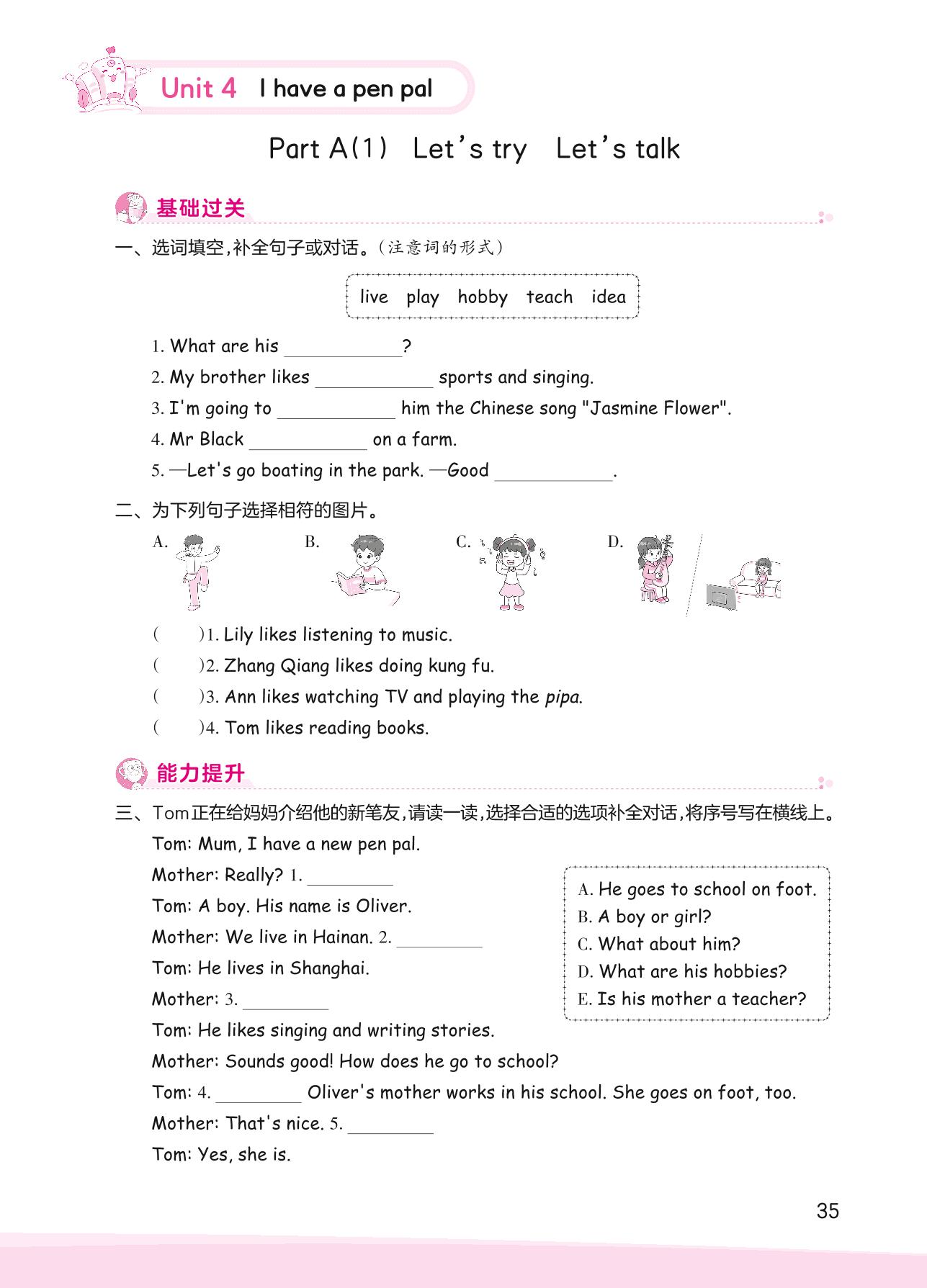 2023上册六年级英语人教PEP版 Unit 4—Part A(1) Let’s try Let’s talk