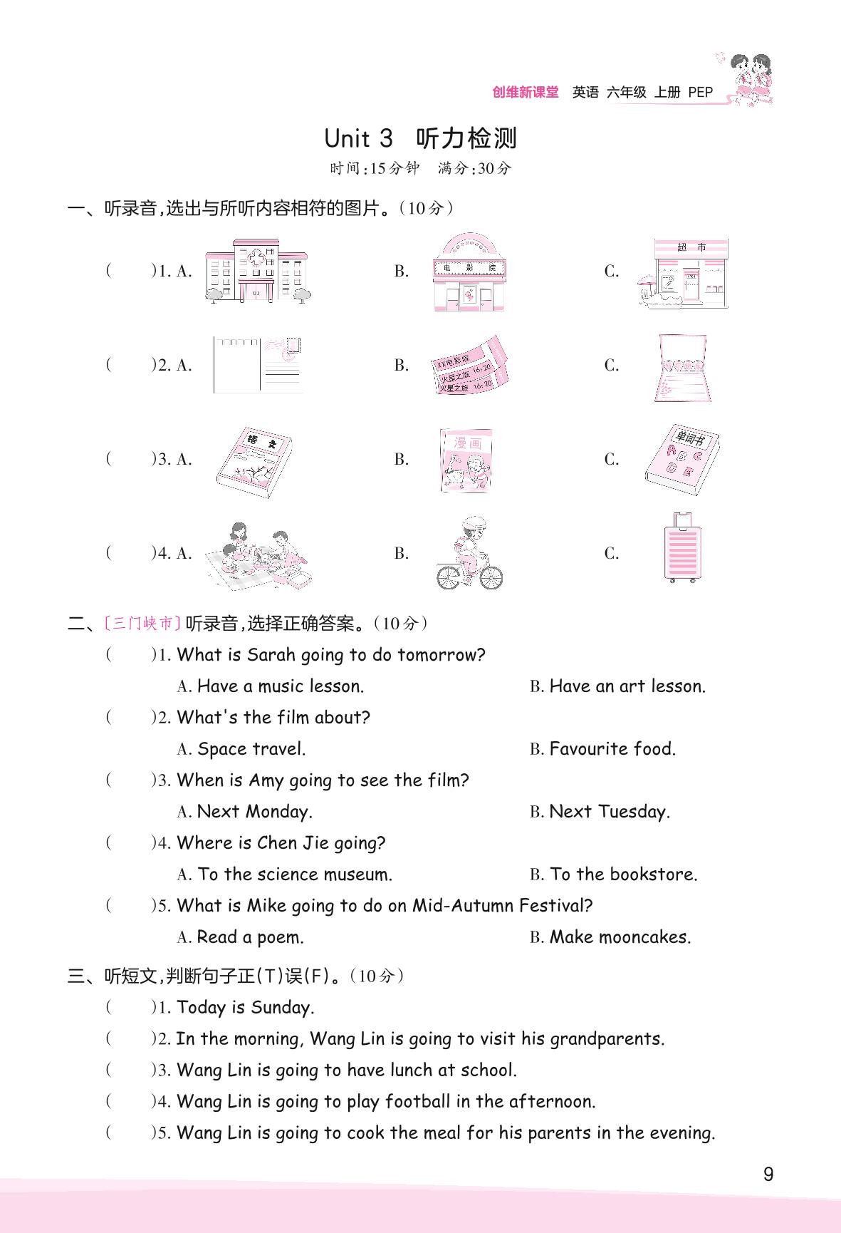 2023上册六年级英语人教PEP版 Unit 3 听力检测