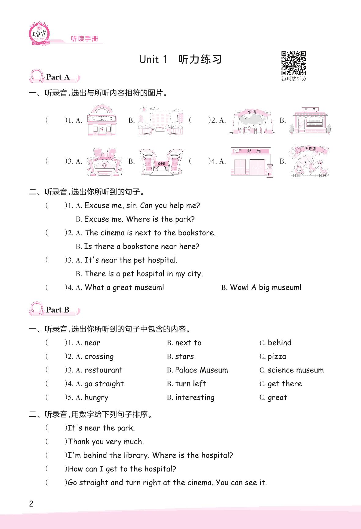 2023上册六年级英语人教PEP版 Unit 1 听力练习