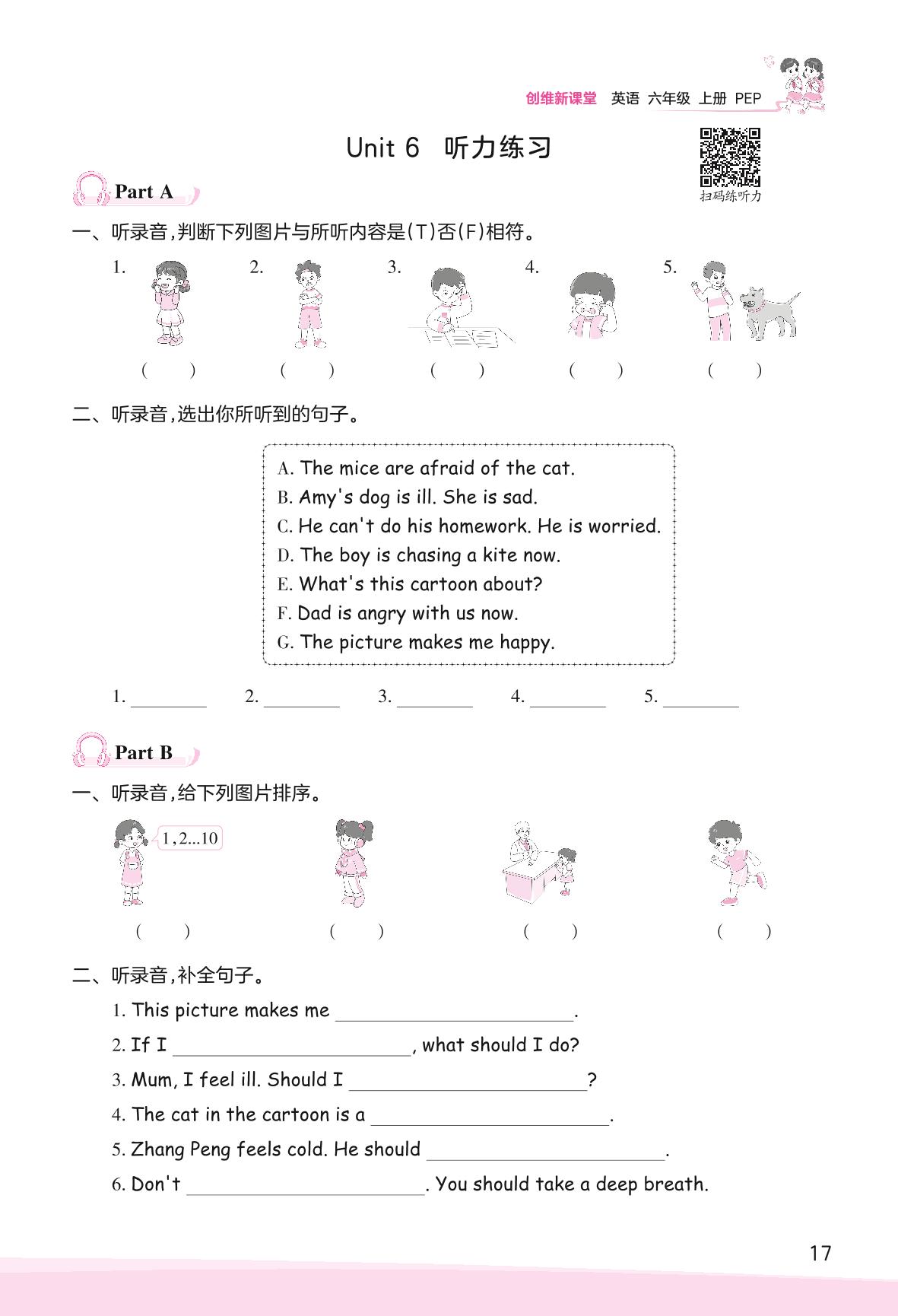2023上册六年级英语人教PEP版 Unit 6 听力练习