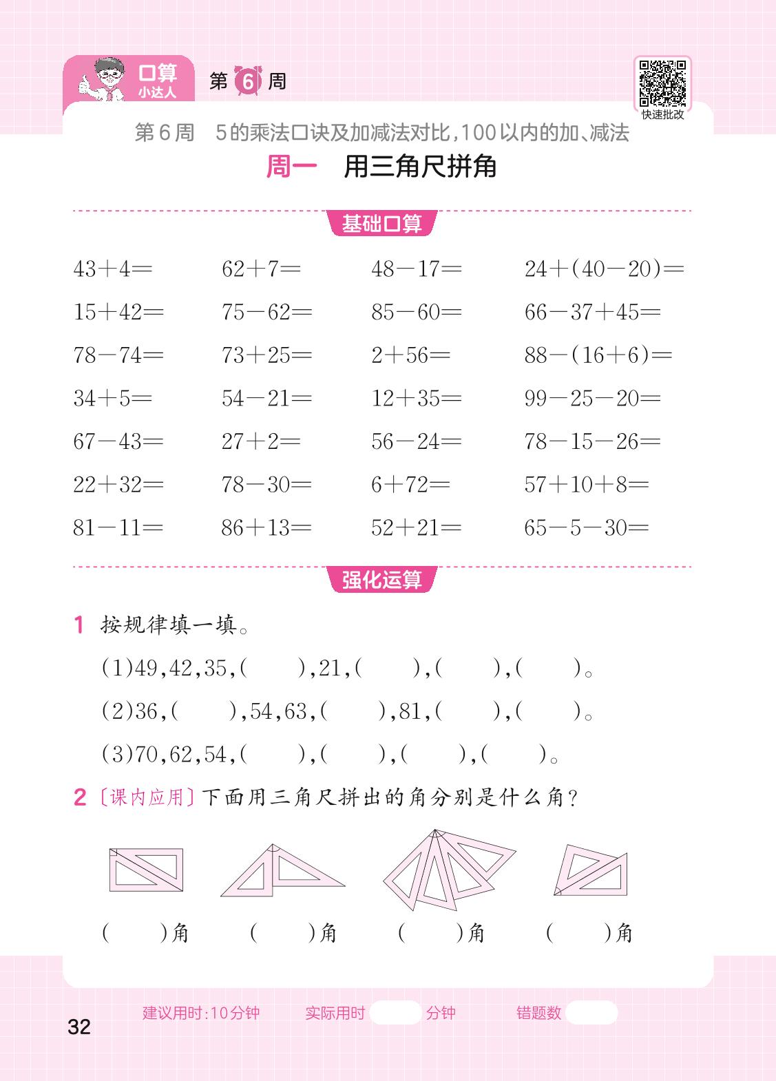 2023上册二年级数学人教版 第6周口算运算