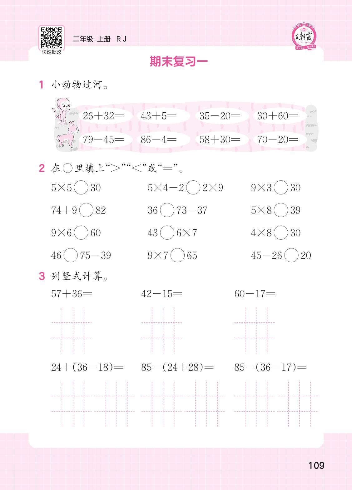 2023上册二年级数学人教版 期末复习一(计算专练)