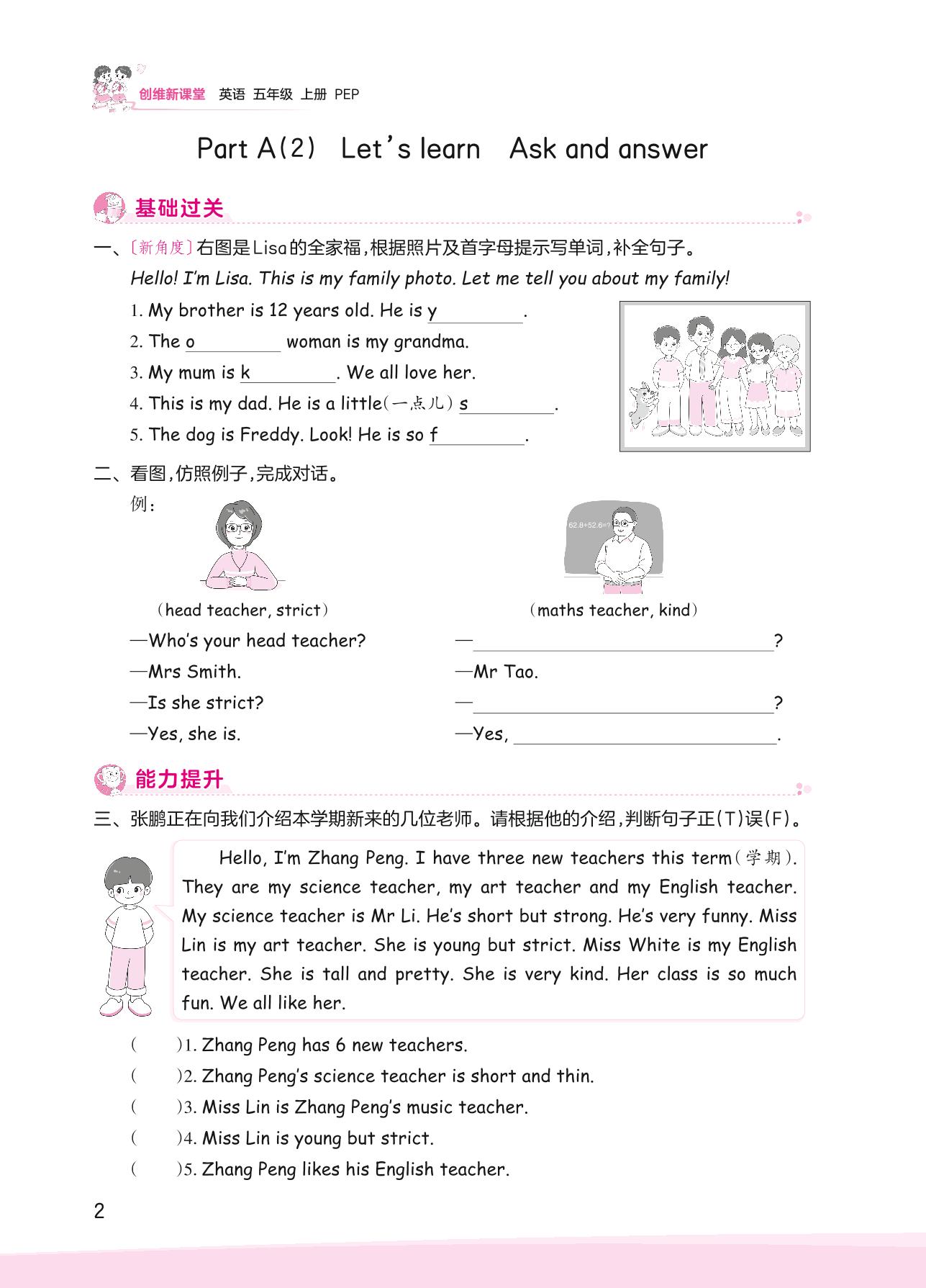 2023上册五年级英语人教PEP版 Unit 1—Part A(2) Let’s learn Ask and answer