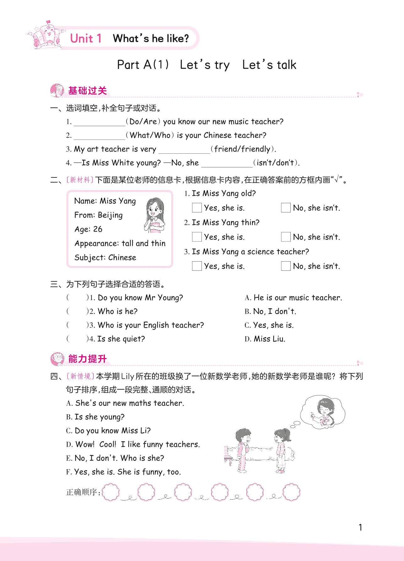 2023上册五年级英语人教PEP版 Unit 1—Part A(1) Let’s try Let’s talk